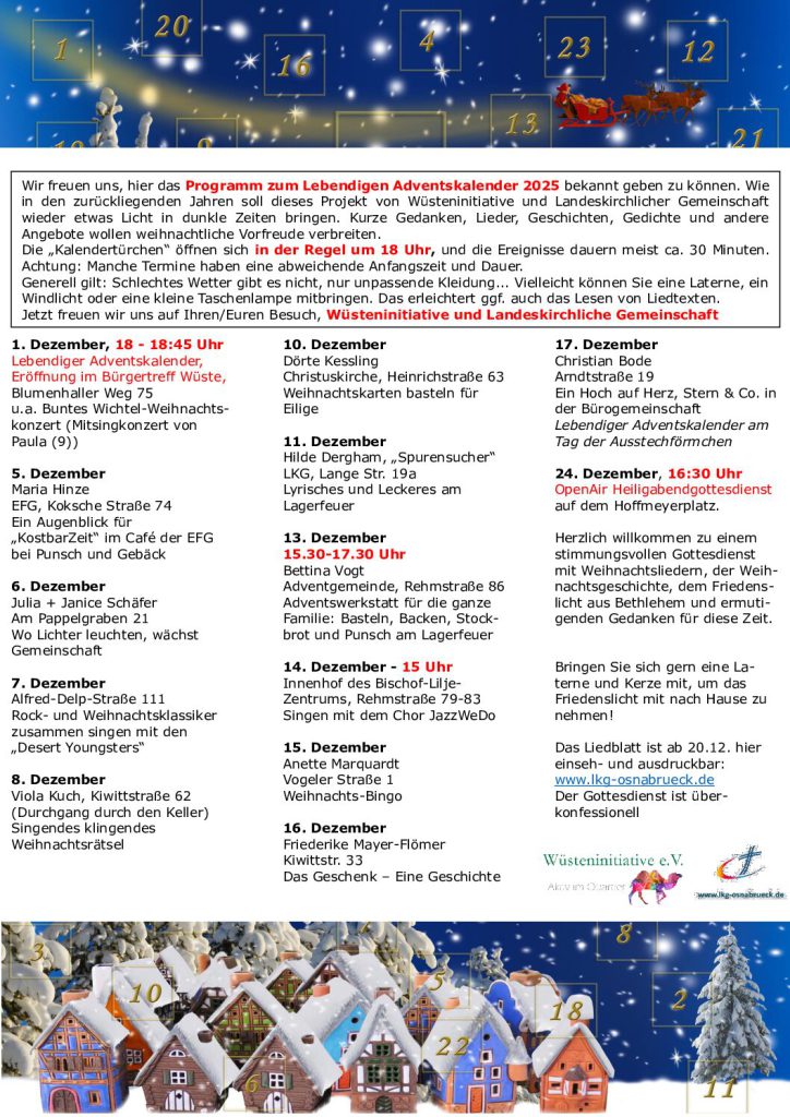 Das gedruckte Programm bekommt ihr beim Bürgertreff, der Landeskirchlichen Gemeinschaft und an allen Verteilstellen der „Wüsten Nachrichten“.